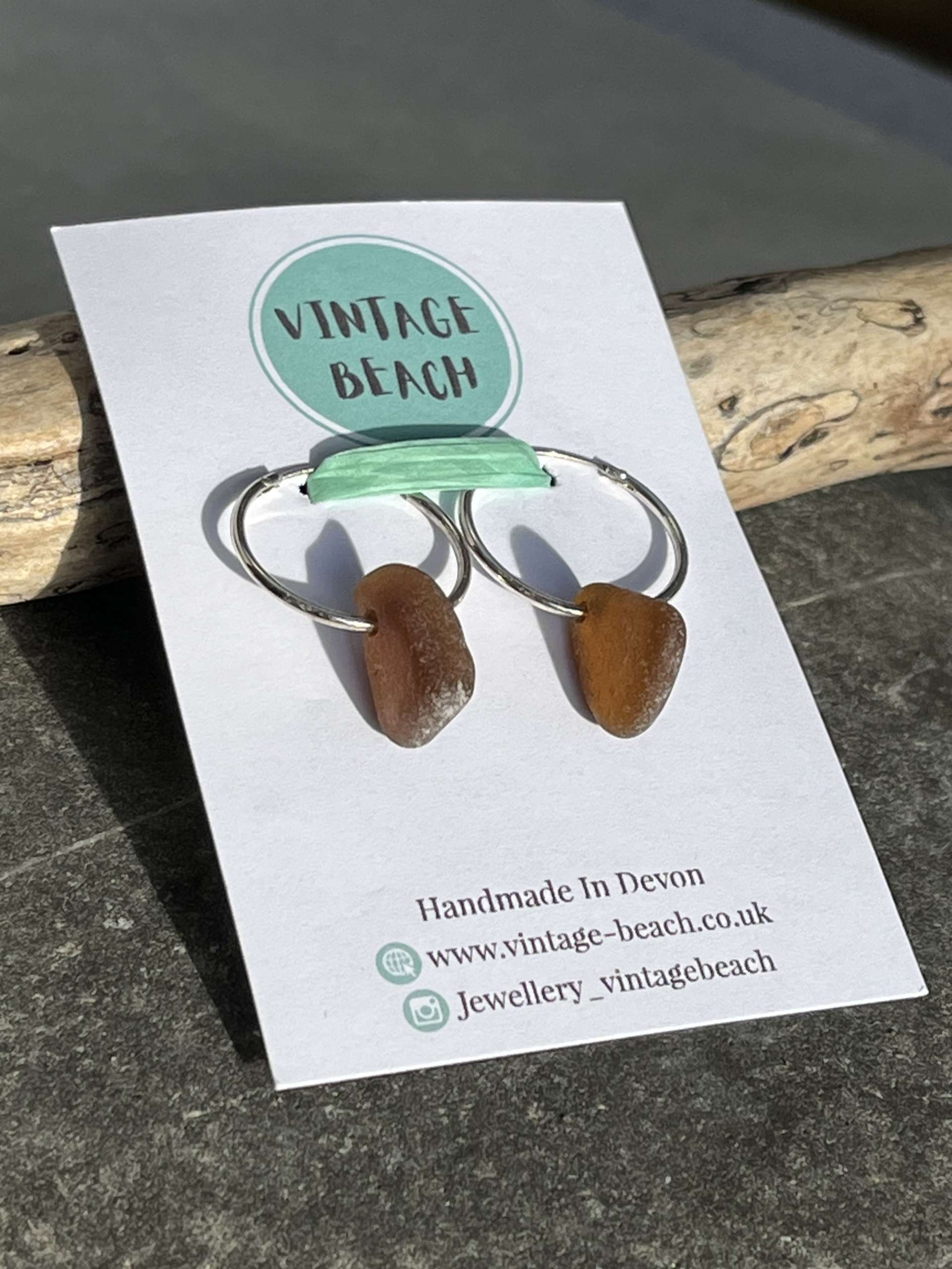 Amber Devon sea glass & sterling silver 20mm hoop earrings